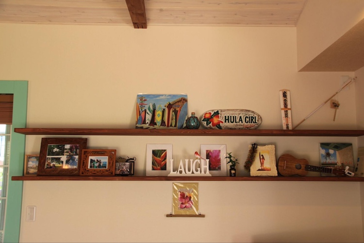 見せる収納でインテリアを楽しむ。ハワイアンテイストの飾り棚活用